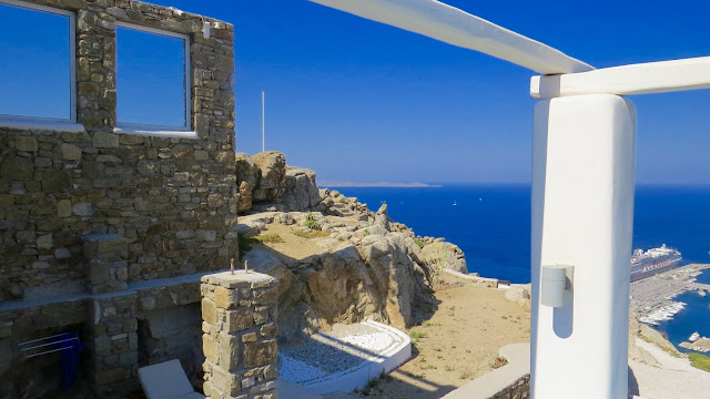 Now, to get views like that you can probably tell that we were pretty high up. If you look on the birds eye view, Manolia View isn't far from Mykonos Town at all, however when you factor in the gradient it definitely isn't walkable. I wouldn't recommend staying here unless you are happy to rent a car or a quad bike for your stay (even then the drive way up was pretty close to 90 degrees, so not for the faint hearted). So worth it for these views though.